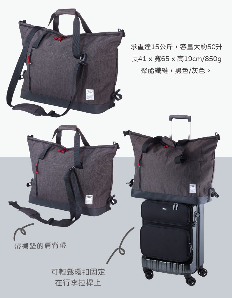 無論是運動,休閒還是小旅行TROIKA 的Business WEEKENDER都有足夠的空間容納您可能需要的一切。硬質材質不易破損旅行袋內部包含一個主隔層,三個口袋,一個含拉鍊的暗袋與一個洗衣袋。 另外還有一個帶拉鍊的前袋,可固定在手推車上的後腰帶。兩個提手和可拆卸且可調節的肩帶帶給你移動時的舒適感,側面的插扣扣上後可在旅行袋爆量時保持袋子方正的形狀,不會因為塞滿而變形。加墊的底部則提供了放置於行李箱上的穩定性。