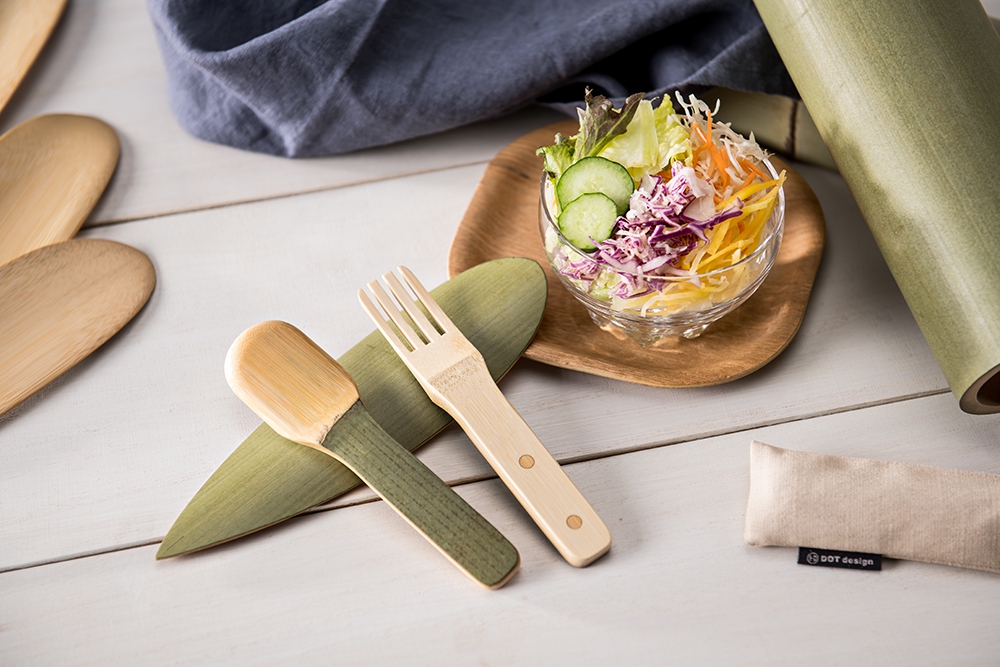 結構設計上,不拼接竹材,由竹管一體成形出湯匙與叉子,保留原有的紋路與竹節,並配置磁吸功能,方便收納,發揮餐具最大的功能,方便成人與兒童使用。
