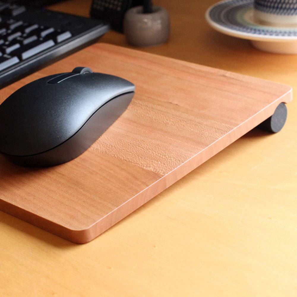 大尺寸原木滑鼠墊可使用兩種不同角度,傾斜角度可減輕手部負擔,平放時的凹槽設計可當筆架使用。