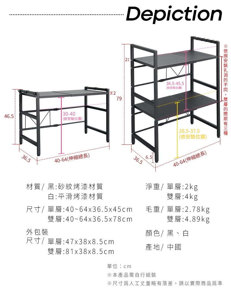 尺寸:寬40-64 x 深36.5 x 高79 cm