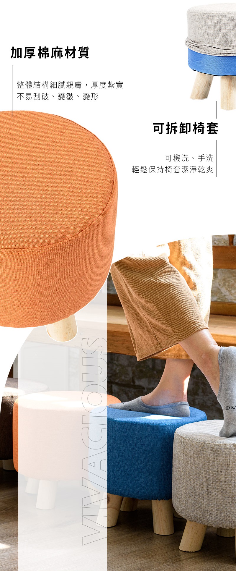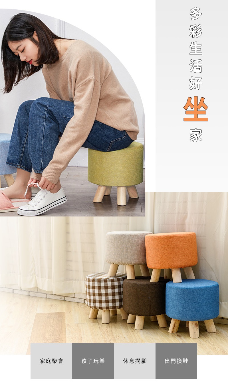 材質:棉麻布料、高回彈海綿、實木