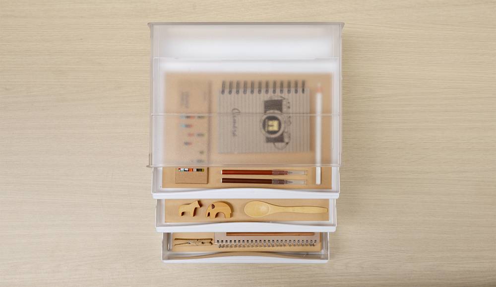透身搭配簡潔白抽,透明側邊美觀大方,還能搭配標籤、紙膠帶標示分類。