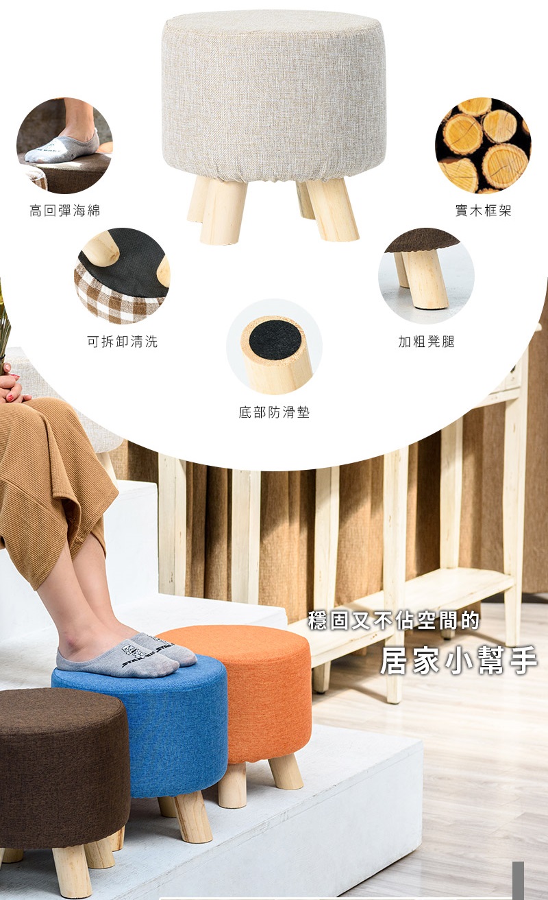 材質:棉麻布料、高回彈海綿、實木